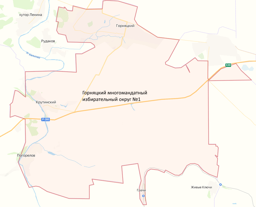 Границы округа: П.ГОРНЯЦКИЙ (4644 избирателей), СТ.ГРАЧИ (71 избирателей), Х.КРУТИНСКИЙ (586 избирателей), Х.ПОГОРЕЛОВ (313 избирателей) |