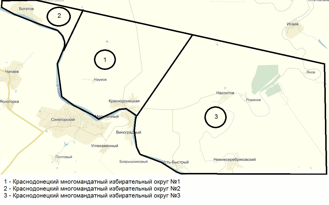 Графическое изображение схемы многомандатных избирательных округов для проведения выборов депутатов Собрания депутатов Краснодонецкого сельского поселения Белокалитвинского района Ростовской области