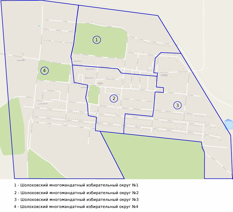 Графическое изображение схемы многомандатных избирательных округов для проведения выборов депутатов Собрания депутатов Шолоховского городского поселения Белокалитвинского района Ростовской области
